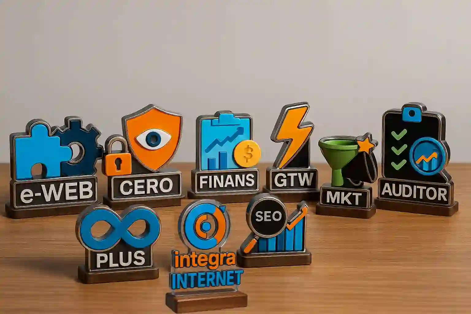 «integra INTERNET» desarrolla un sistema digital completo basado en el ecosistema e-WEB, formado por la familia de programas CERO, FINANS, PLUS, SEO, MKT, GTW y AUDITOR. Una metodología que coordina todos los procesos necesarios para que un proyecto funcione de forma estable, escalable y eficiente.