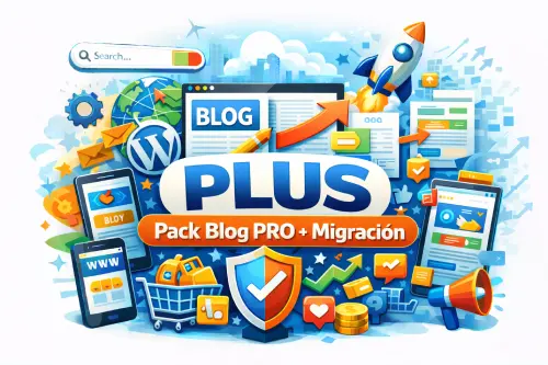 PLUS · Pack Blog PRO + Migración es el servicio mensual para arrancar un blog avanzado con estructura editorial profesional, manteniendo el histórico de contenidos mediante una migración inicial controlada.